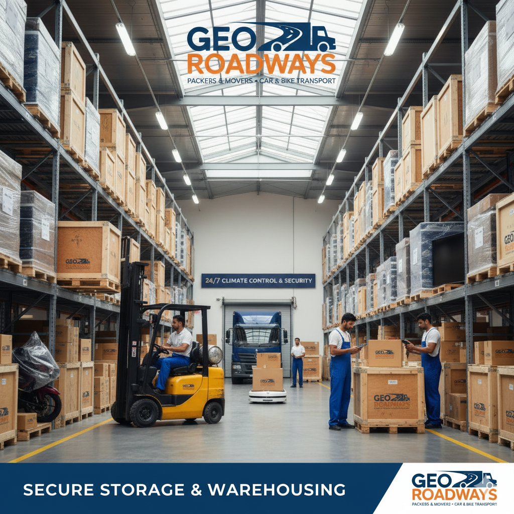Geo Roadways offers secure and affordable storage & warehousing services with 24/7 surveillance, clean facilities, and flexible plans for household and commercial goods.